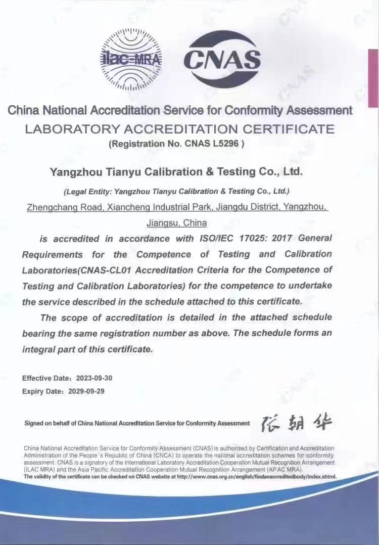 揚(yáng)州市天域計(jì)量測(cè)試有限公司,坐落在交通便利的揚(yáng)州市江都區(qū)仙城工業(yè)園,成立于2010年10月,2011年11月正式獲取中國(guó)合格評(píng)定國(guó)家認(rèn)可委員會(huì)認(rèn)可(授權(quán)),注冊(cè)號(hào):CNAS L5296。近幾年的發(fā)展,實(shí)驗(yàn)室已具備了較大規(guī)模,并形成了集計(jì)量器具檢測(cè),計(jì)量技術(shù)咨詢和計(jì)量器具銷售為一體的專業(yè)化技術(shù)機(jī)構(gòu),客戶覆蓋蘇南、蘇北、和浙江,安徽部分地區(qū),客戶群總量達(dá)到了上千家企事業(yè)單位。實(shí)驗(yàn)室建立健全了一套較為完整的內(nèi)外部質(zhì)量管理體系,至今未發(fā)生糾紛和客戶投訴事件。